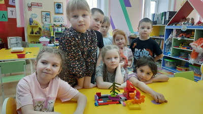 Сегодня дети конструировали из конструктора ЛЕГО, по отрывку "Сказки о царе Салтане" (ель стоит перед дворцом). Ребята работали одной командой, каждый конструировал свою часть для общей композиции. Вот такая красота получилась!