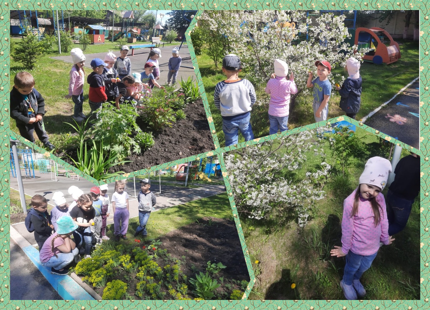 На прогулке мы с детьми наблюдали за цветущими деревьями, кустарниками, цветами на территории образовательного учреждения. Ребята с любопытством разглядывали ветки деревьев и кустарников, цветы на клумбе. Детей удивляло всё: и яркие лепестки цветов, и разнообразной формы листья, и бутоны, и конечно, запах. В ходе наблюдения дети сделали вывод о роли света, тепла и влаги в жизни растений. Так же вспомнили правила бережного обращения с растениями: нельзя ломать, рвать, топтать. Детям всегда намного интереснее и понятнее то, что они могут увидеть, потрогать, то есть изучить наглядно, а теплые весенние дни пора для исследования и общения с природой.