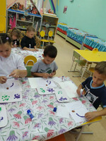 Воспитатель, Ирина Николаевна, с детьми вспомнила фрукты и овощи. И дети остановили свой выбор на сливе. Выяснили, что слива относится к фруктам. Перед занятием, ребята повторили правила работы с клеем. Все дети приступили к выполнению задания с большим интересом. Детям занятие очень понравилось, хотя было очень сложным. В нашей группе появилась красивая выставка.