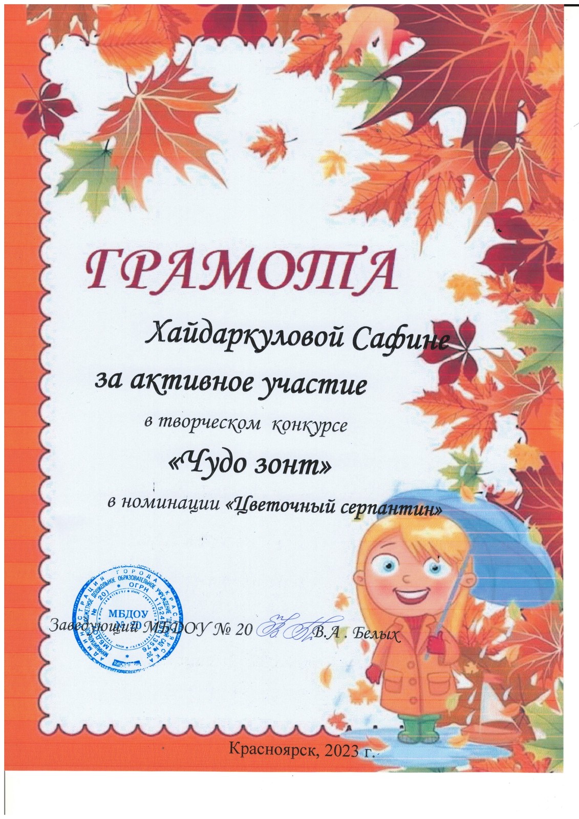 Конкурс "Чудо зонт" 1 место